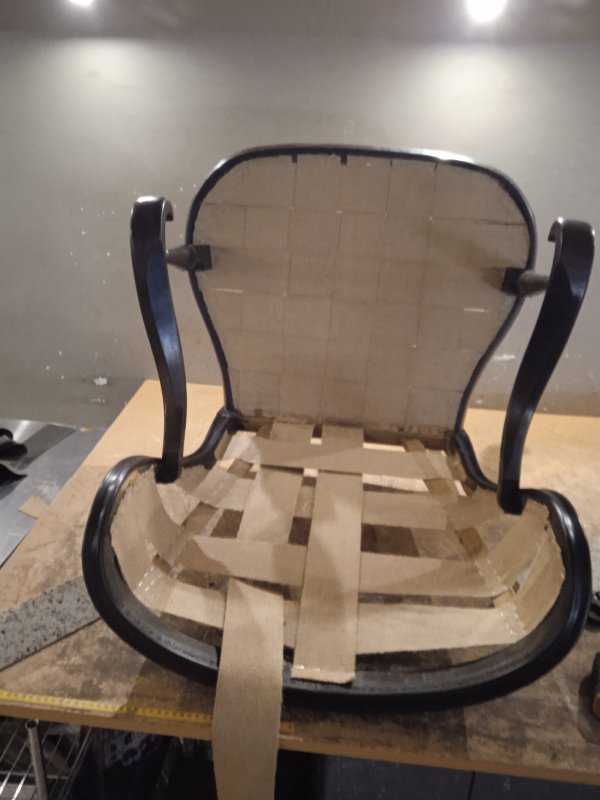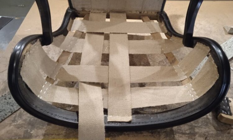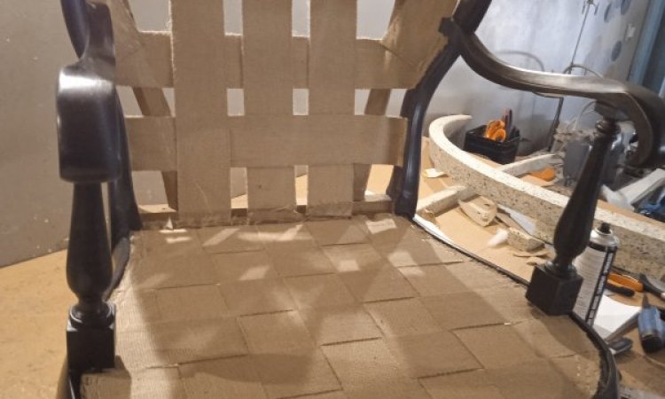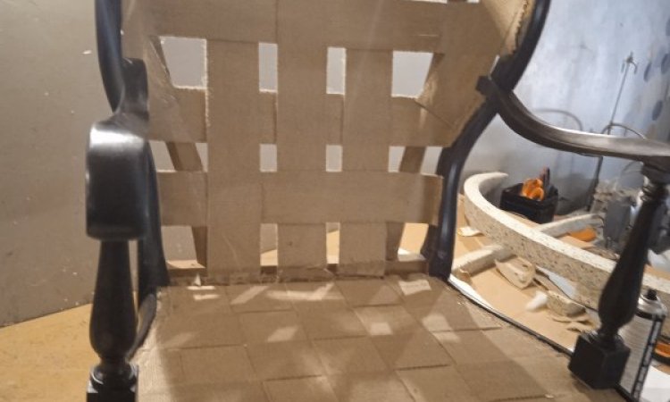 - Pose d’une nouvelle toile forte, d’un garnissage adapté et du tissu final choisi par le client.